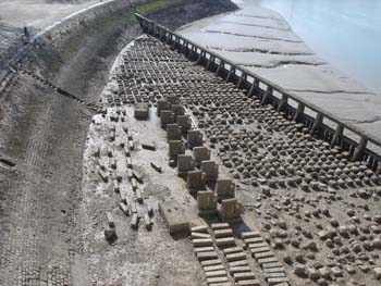 La marée est basse et toutes ces pierres bien rangées au pied de la tour Saint-Nicolas donnent une "touche artistique" à la photo qui suit.